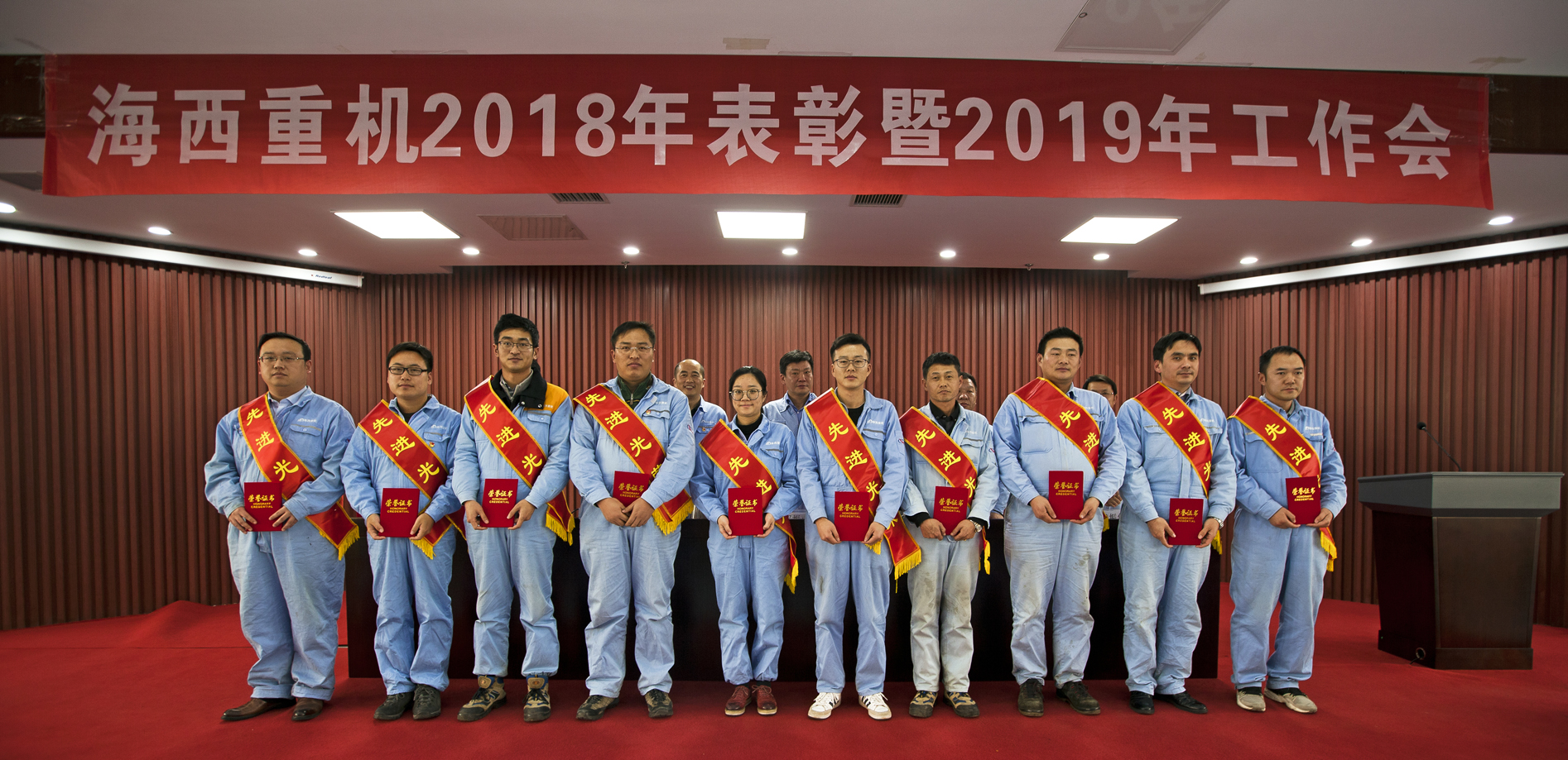 1月19日,海西重機(jī)2018年表彰暨2019年工作會在901會議室順利召開,公司主管及以上管理人員、2018年度優(yōu)秀管理者、優(yōu)秀員工參加會議,公司黨委書記、董事長鄧振山主持會議。