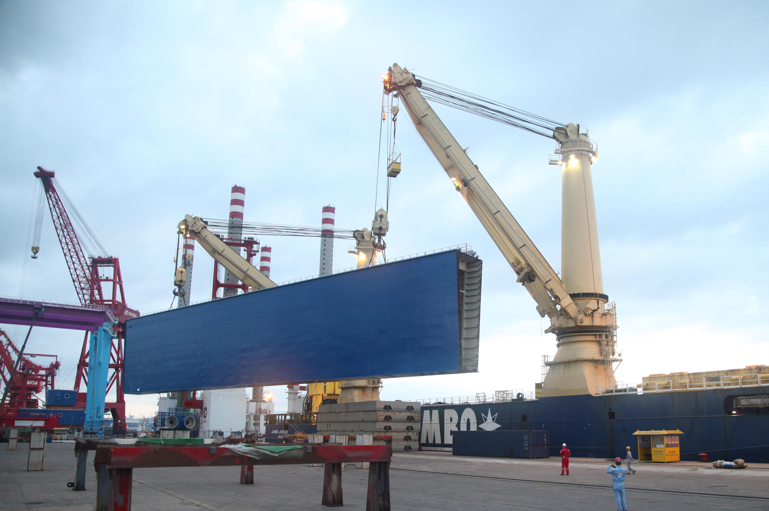 海西重機(jī)從設(shè)計研發(fā)、生產(chǎn)管理、質(zhì)量控制、風(fēng)險管控等方面嚴(yán)格把控,從項目開始即高質(zhì)量嚴(yán)要求,對設(shè)備性能、安全性、使用維護(hù)等設(shè)計全面精心把關(guān)審核,對尺寸、精度、外觀、安裝接口位置等高精度控制,得到業(yè)主及駐廠意大利船級社監(jiān)理的認(rèn)可??紤]到用戶現(xiàn)場無大型起重設(shè)備,此次發(fā)運采用具有2臺900噸克令吊的重吊船進(jìn)行作業(yè),滿足了所有吊裝和運輸要求,不僅節(jié)約了項目成本,而且提高了裝卸船的工作效率。