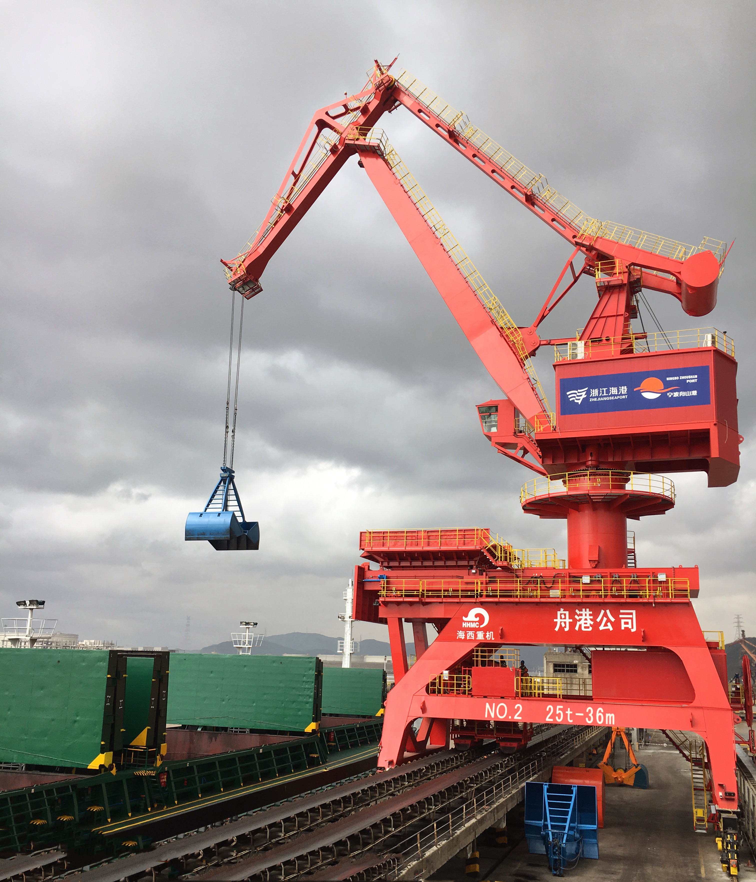5月12日,武漢船機(jī)海西重機(jī)為寧波舟山港老塘山碼頭打造的2臺(tái)25T-36M帶斗門機(jī)順利交付。
