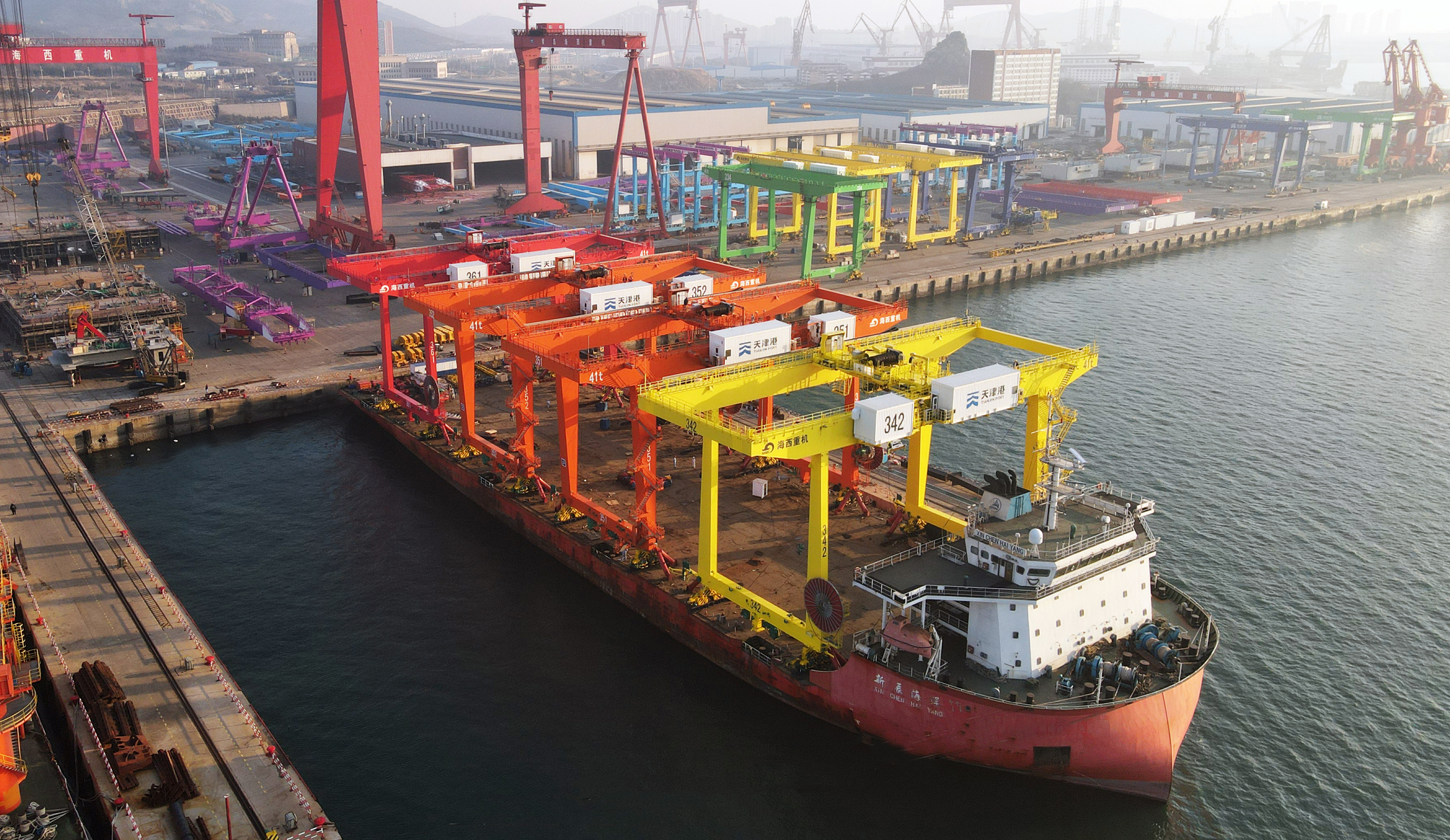 2月19日,天津港北疆港區(qū)C段智能化集裝箱碼頭一期工程項(xiàng)目第三批4臺自動化軌道吊順利發(fā)運(yùn),中國船舶集團(tuán)旗下武漢船機(jī)海西重機(jī)公司完成了新春首發(fā)。