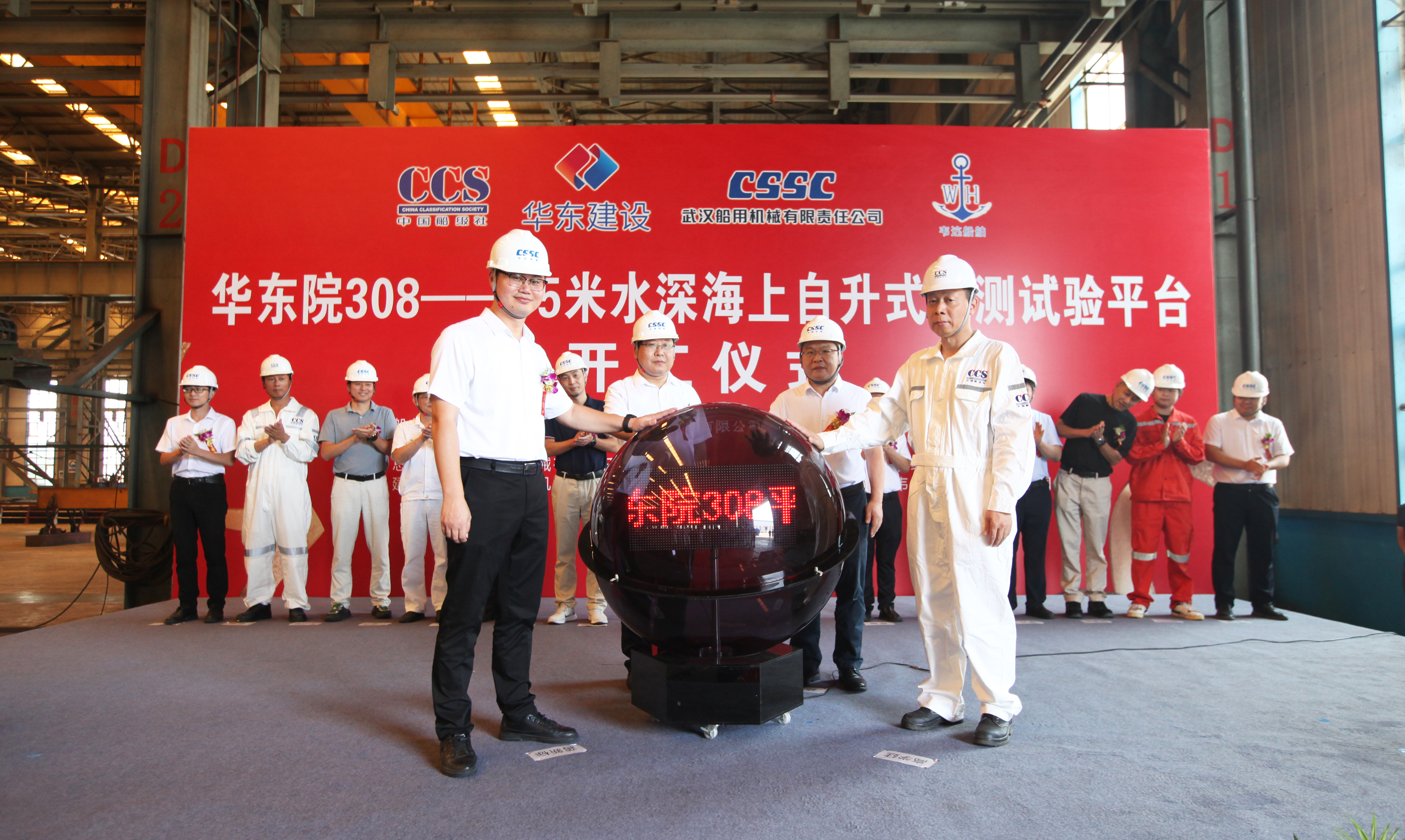 8月26日,中國船舶集團(tuán)旗下武漢船機(jī)海西重機(jī)公司承建的華東院308——75米水深海上自升式勘測試驗(yàn)平臺順利開工。浙江華東建設(shè)工程有限公司、中國船級社青島分社、杭州逸秀船舶技術(shù)服務(wù)有限公司、上海韋迒船舶科技有限公司、中國船舶工業(yè)貿(mào)易有限公司、武漢船用機(jī)械有限責(zé)任公司、青島海西重機(jī)有限責(zé)任公司代表出席儀式。