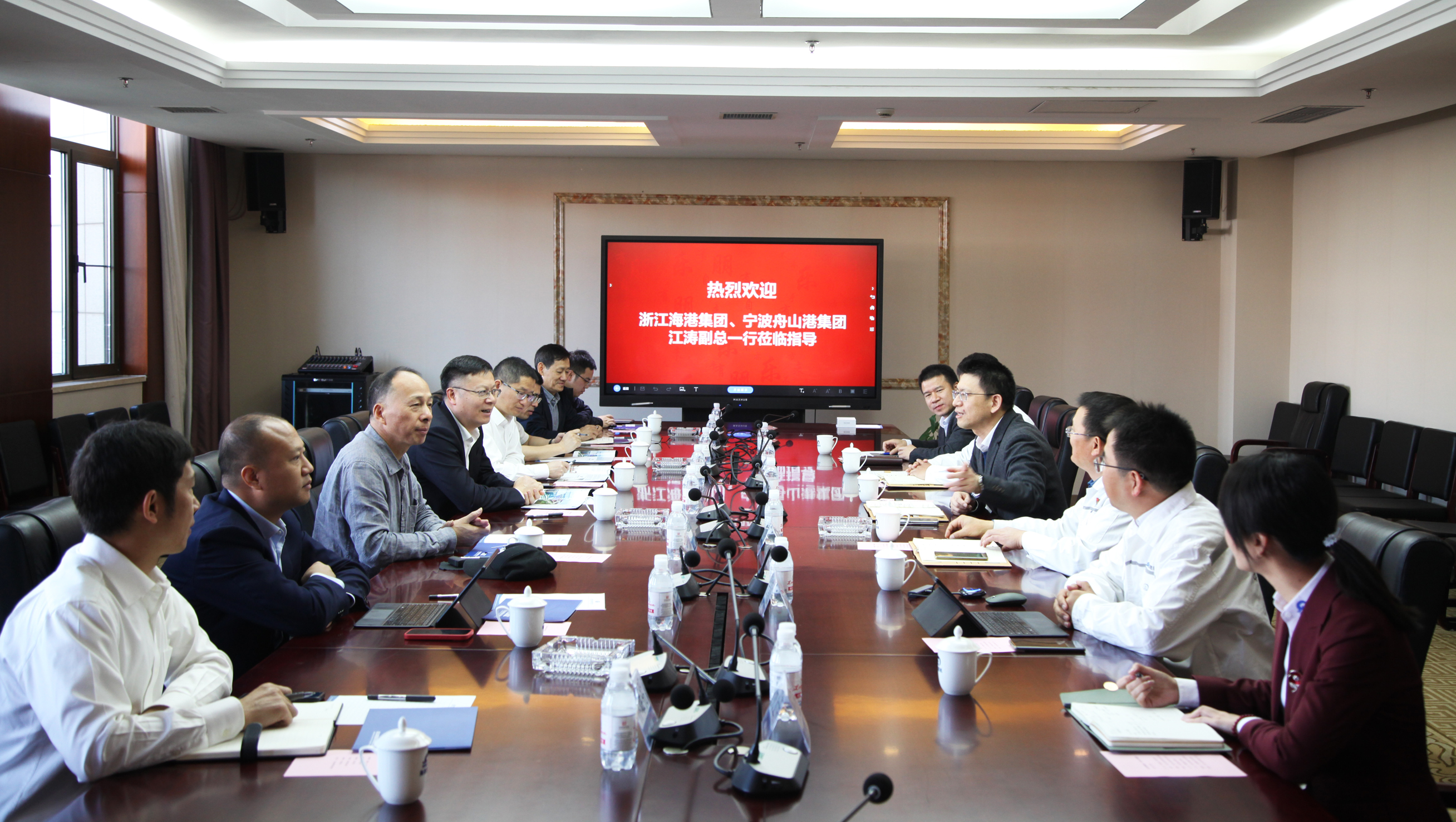 5月16日,浙江省海港集團(tuán)、寧波舟山港集團(tuán)黨委委員、副總經(jīng)理江濤一行到中國(guó)船舶集團(tuán)旗下武漢船機(jī)海西重機(jī)公司考察交流。海西重機(jī)黨委書(shū)記、董事長(zhǎng)李儒新,副總經(jīng)理代振華、謝宛朋等參會(huì),雙方就未來(lái)發(fā)展與合作進(jìn)行了深入的交流。