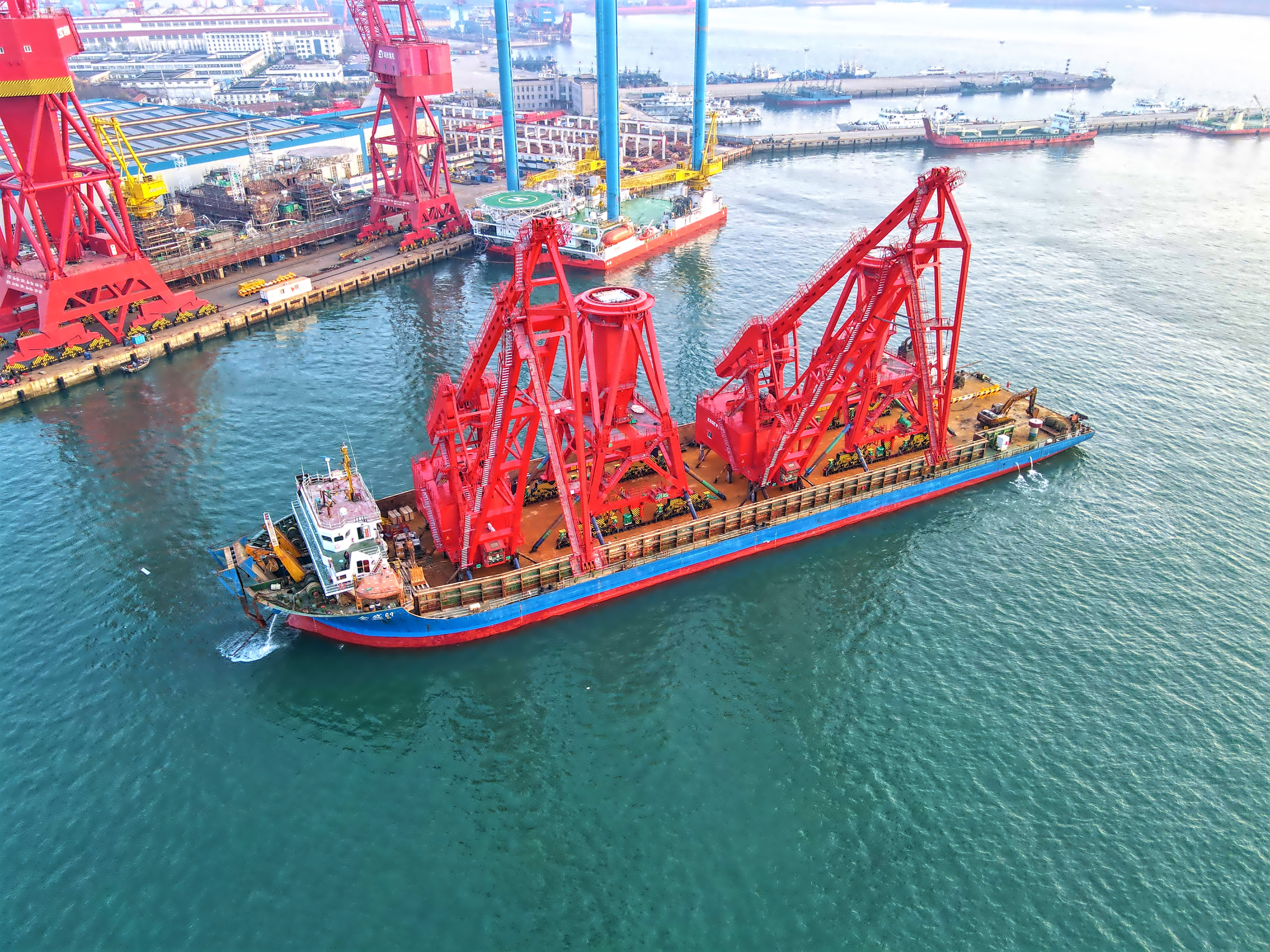 該批設備最大起重量50噸,起升高度40米,最大工作幅度62米,將安裝于中國船舶長興造船基地滬東中華船廠1#露天船塢東側(cè),服務于船塢及1-3#總組場地。