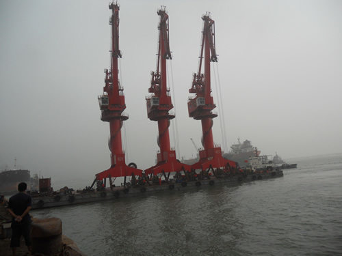 G115于2012年2月3日正式開工,在公司各個部門的努力奮斗下,于8月17日承載著海西的希望揚帆起航發(fā)往連云港,于8月19日靠泊連云港集團東泰公司。在現(xiàn)場工作人員的共同努力下,于8月25日三臺機全部落軌東泰公司碼頭,并于9月7日交予業(yè)主使用?,F(xiàn)場的安裝調(diào)試進展迅速,領(lǐng)先于振華公司同期落軌的兩臺門機,三臺門機投入使用至今運行平穩(wěn),深得業(yè)主方面認可。